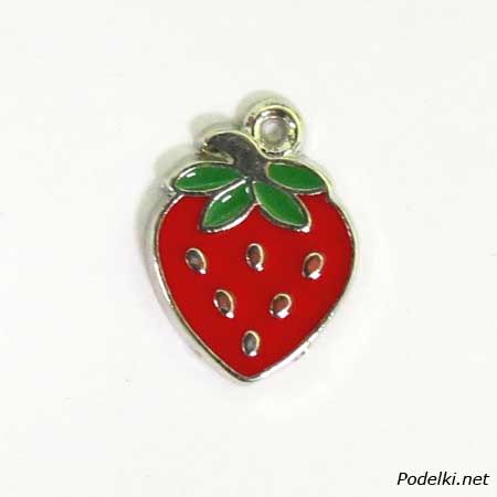Подвеска Клубника с эмалью красная 0004887 серебряный цвет 15x12 мм