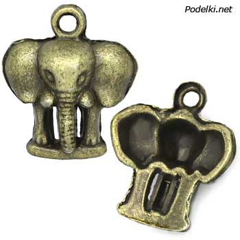 Подвеска Слон выпуклый 0004892 бронзовый цвет 20x17 мм