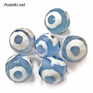 Натуральная бусина Дзи Агат глазастый голубой 0004937 шарик граненый 10 мм