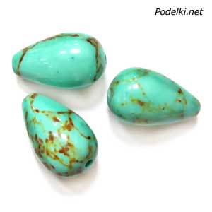 Натуральная бусина Бирюза зеленая 0004948 капля 16x10 мм