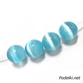 Натуральная бусина под Кошачий глаз голубой 0004964 шарик 8 мм