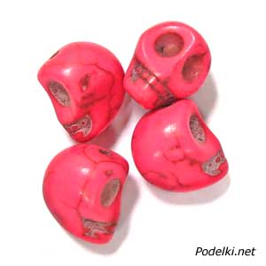 Натуральная бусина Говлит ярко-розовый цвет 0004972 череп 13x12x10 мм