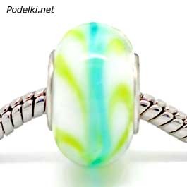 Стеклянная бусина Пандора Ветка 0005101 белый с желтым и голубым 14x10 мм