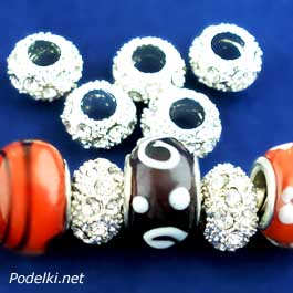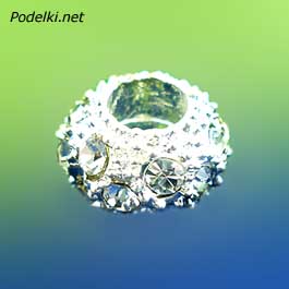 Металлическая бусина Пандора 0005106 серебряный цвет со стразами 12x6 мм