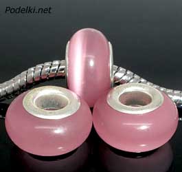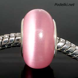 Натуральная бусина Пандора под Кошачий глаз 0005115 розовый цвет 14x8 мм