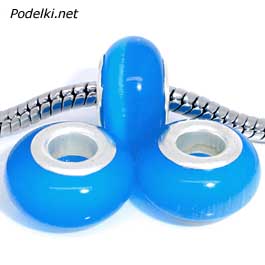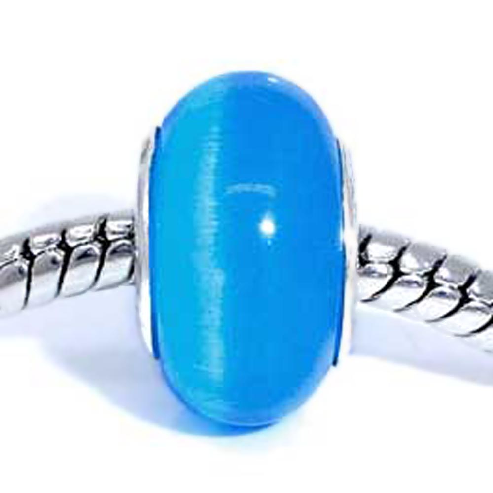 Натуральная бусина Пандора под Кошачий глаз 0005116 голубой цвет 14x8 мм