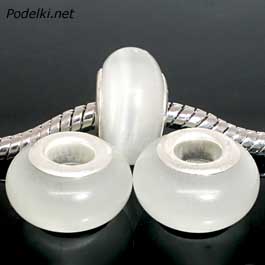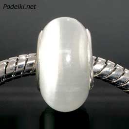 Натуральная бусина Пандора под Кошачий глаз 0005117 белый цвет 14x8 мм