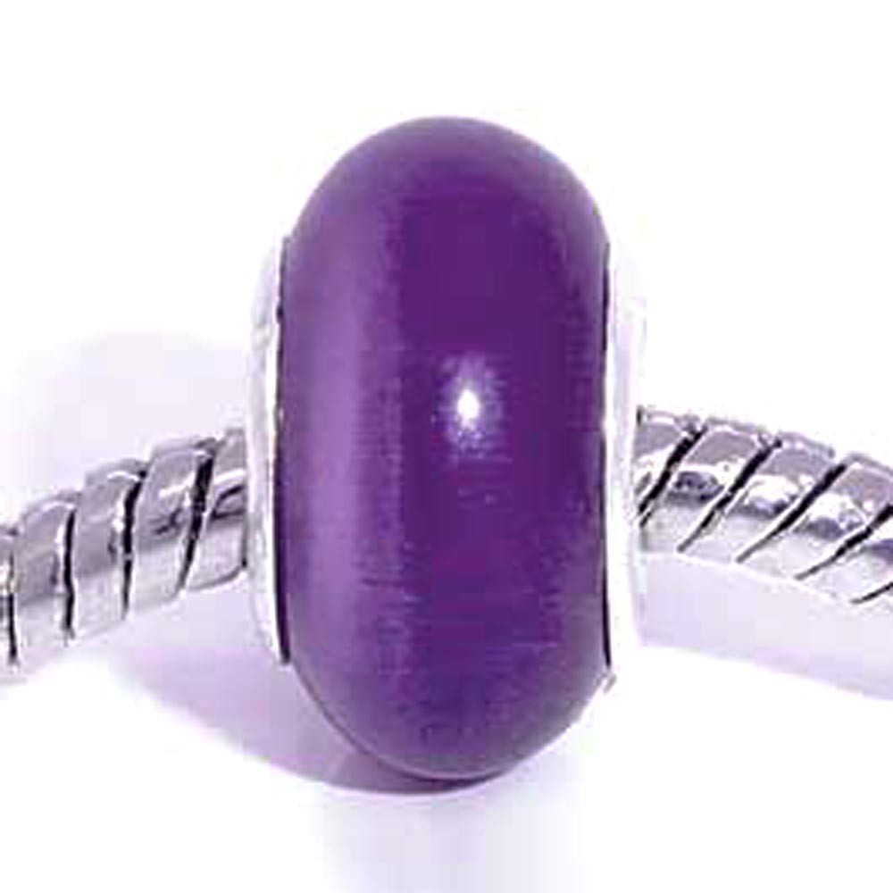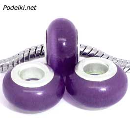 Натуральная бусина Пандора под Кошачий глаз 0005118 фиолетовый цвет 14x8 мм