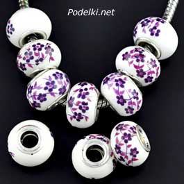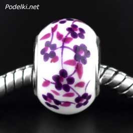 Керамическая бусина Пандора Цветок 0005132 белый с фиолетовым 13x9 мм