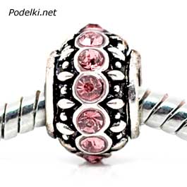Металлическая бусина Пандора 0005145 серебряный цвет с розовыми стразами 11x7 мм