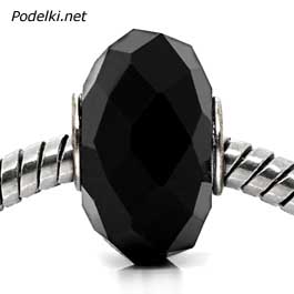 Стеклянная бусина Пандора Бутон граненый 0005149 черный 14x9 мм
