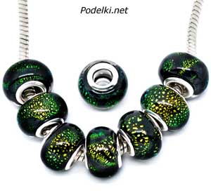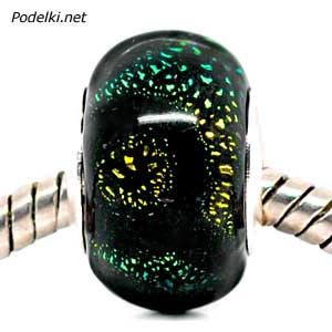 Стеклянная бусина Пандора Созвездие 0005159 прозрачный черный с желто-зелеными блестками 14x10 мм
