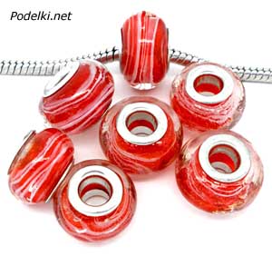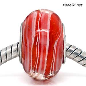 Стеклянная бусина Пандора 0005165 красный полосатый прозрачный 14x10 мм