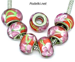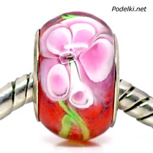 Стеклянная бусина Пандора Цветок 0005169 красный прозрачный с розовым 14x10 мм