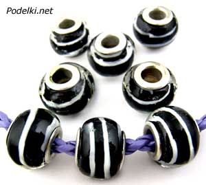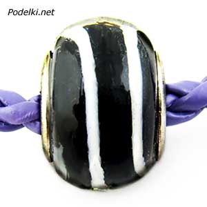 Стеклянная бусина Пандора 0005181 прозрачный полосатый черный с белым 14x9 мм