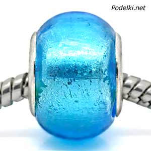 Стеклянная бусина Пандора 0005182 голубой прозрачный с блестящей сердцевиной 14x10 мм