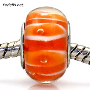 Стеклянная бусина Пандора 0005183 оранжевый полосатый прозрачный 14x10 мм