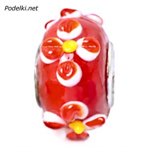 Стеклянная бусина Пандора Цветок 0005186 красный с белым 17x10 мм