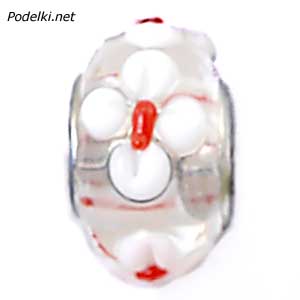 Стеклянная бусина Пандора Цветок 0005189 прозрачный с белым 17x10 мм