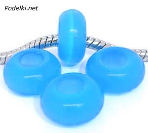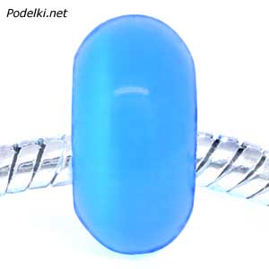 Натуральная бусина Пандора под Кошачий глаз 0005192 голубой цвет без вставки 14x7 мм