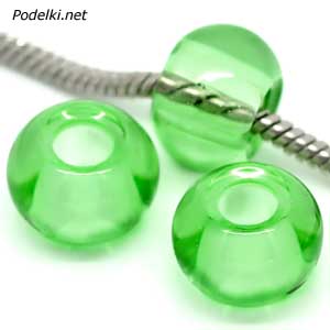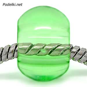 Стеклянная бусина Пандора 0005193 прозрачный салатный цвет без вставки 14x10 мм