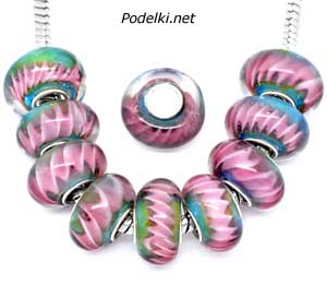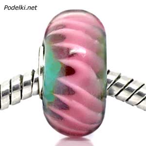 Стеклянная бусина Пандора Полосатая 0005196 прозрачный с розовым и голубым 14x8 мм