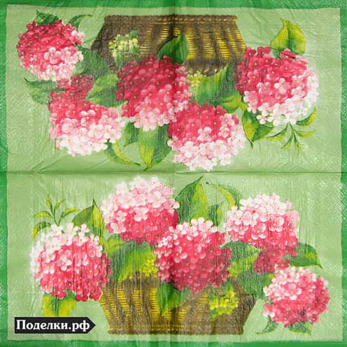 Салфетка Гортензия в корзинке 0005473 двухслойная 33x33 см