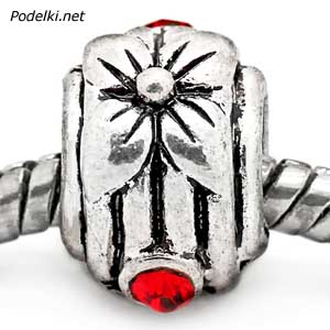 Металлическая бусина Пандора Цветок 0005806 серебряный цвет с красными стразами 12x8 мм