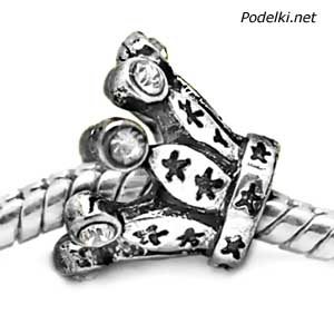 Металлическая бусина Пандора Корона 0005823 серебряный цвет с прозрачными стразами 14x10 мм