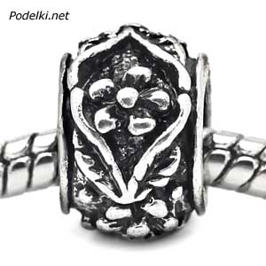 Металлическая бусина Пандора с цветами 0005824 серебряный цвет 10x8 мм