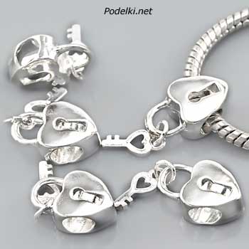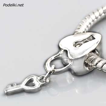 Металлическая бусина Пандора Замочек-сердце с ключиком 0005828 серебряный цвет 15x10 мм