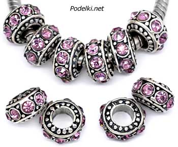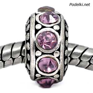 Металлическая бусина Пандора 0005846 серебряный цвет с сиреневыми стразами 10x6 мм