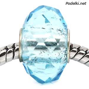 Стеклянная бусина Пандора Бутон граненый 0005853 нежно-голубой прозрачный 14x9 мм