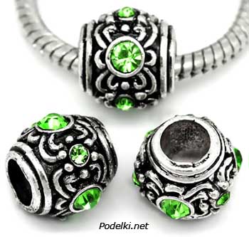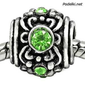 Металлическая бусина Пандора 0005859 серебряный цвет с зелеными стразами 12x11 мм