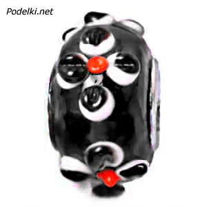 Стеклянная бусина Пандора Цветок 0005881 черный с белым с красной сердцевиной 17x10 мм