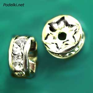 Рондель Простой 0006000 серебряный цвет с прозрачными стразами 7x3 мм