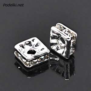 Рондель Квадрат 0006007 серебряный цвет с прозрачными стразами 5x5x2 мм