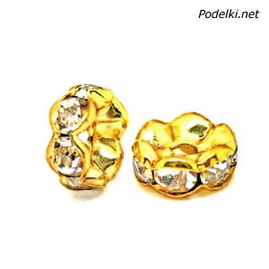Рондель Изящный 0006013 золотой цвет с прозрачными стразами 5x2 мм