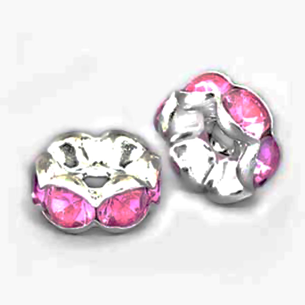 Рондель Изящный 0006016 серебряный цвет с розовыми стразами 6x3 мм