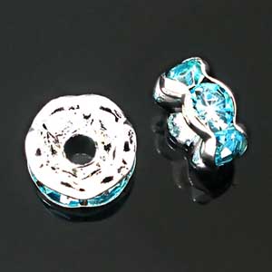 Рондель Изящный 0006018 серебряный цвет с голубыми стразами 6x3 мм