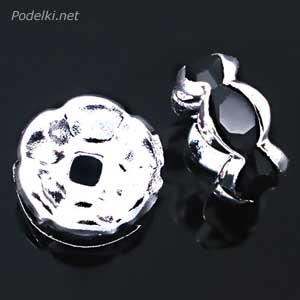 Рондель Изящный 0006020 серебряный цвет с черными стразами 8x4 мм