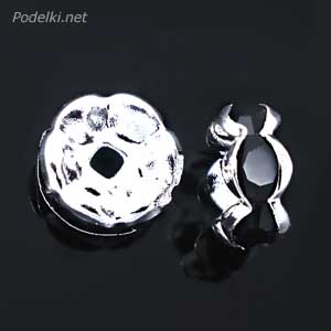 Рондель Изящный 0006021 серебряный цвет с черными стразами 6x3 мм