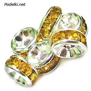 Рондель Простой 0006024 серебряный цвет с желтыми стразами 6x3 мм