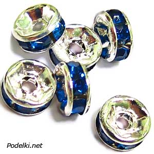Рондель Простой 0006026 серебряный цвет с синими стразами 6x3 мм