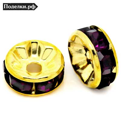 Рондель Простой 0006035 золотой цвет с фиолетовыми стразами 8x4 мм