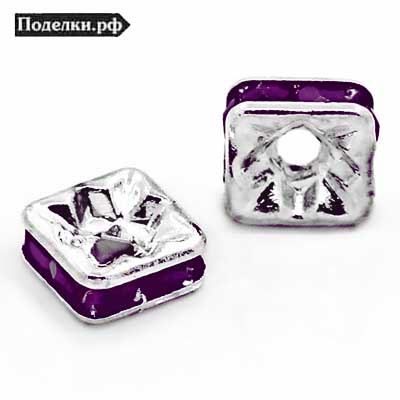 Рондель Квадрат 0006036 серебряный цвет с фиолетовыми стразами 6x6x3 мм