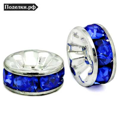 Рондель Простой 0006037 серебряный цвет с синими стразами 8x4 мм