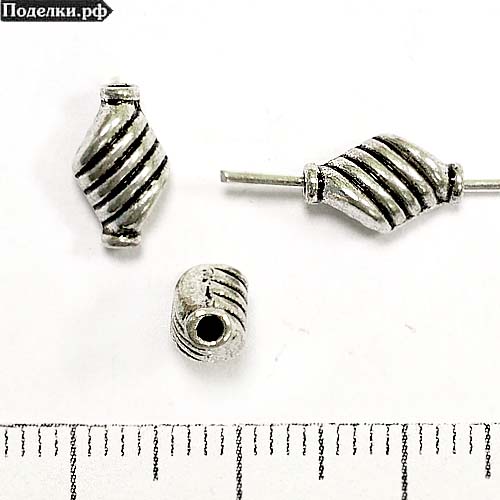 Металлическая бусина Ромб с полосками 0006051 серебряный цвет 10x6 мм