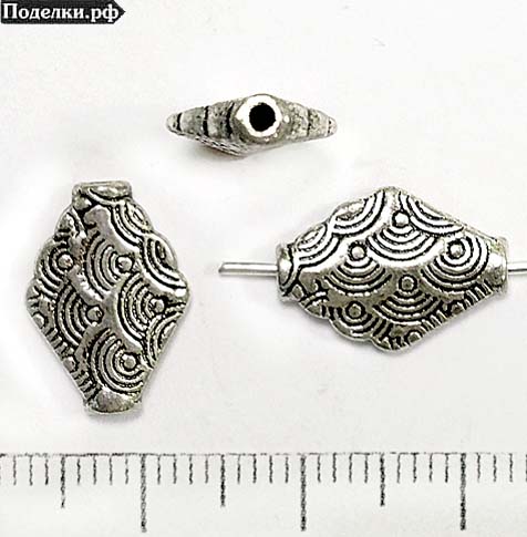 Металлическая бусина Ромб с узором 0006052 серебряный цвет 15x11x3 мм