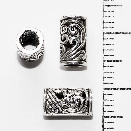 Металлическая бусина Цилиндр изящный 0006059 серебряный цвет 9x5 мм